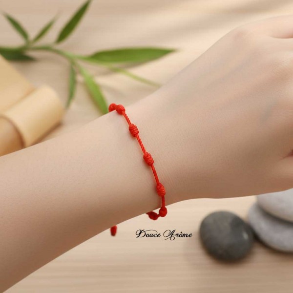 Ce bracelet rouge en cordes tressées, avec 7 noeuds tressés, est un porte-bonheur, dégageant une énergie positive qui apportera chance, bien-être et sagesse à son porteur. Attrayant et aussi léger qu'une plume, ce bracelet est facile à porter et peut s'ajuster à la taille de votre poignet ou de votre cheville, de préférence du côté gauche qui représente le côté récepteur des ondes positives.